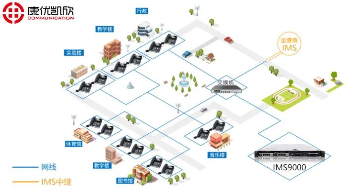 校园传统IC卡因成本比较高、用户相对比较少而逐渐淡出市场。大多数校园需要建立起比较完善的校园电话账号管理系统,拥有自己的通信专网。此时软交换系统IMS9000应运而生,同时提供SIP中继与IMS互通。康优凯欣根据中国校园的环境特点,结合优越的校园网络资源,为其打造以IP通信为基础的电话语音解决方案。